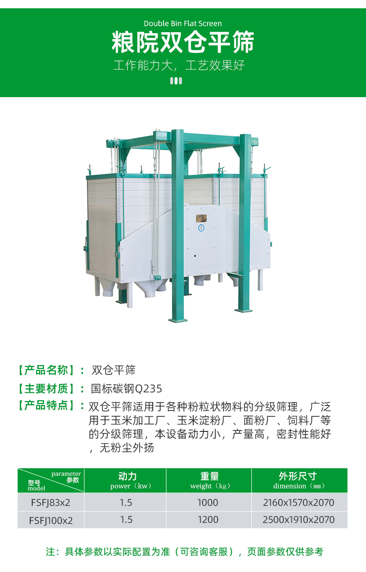 面粉機(jī) 石磨面粉機(jī) 您的位置:首頁 > 產(chǎn)品中心 > FSFS系列雙倉平篩