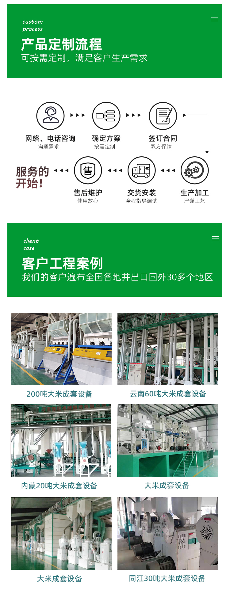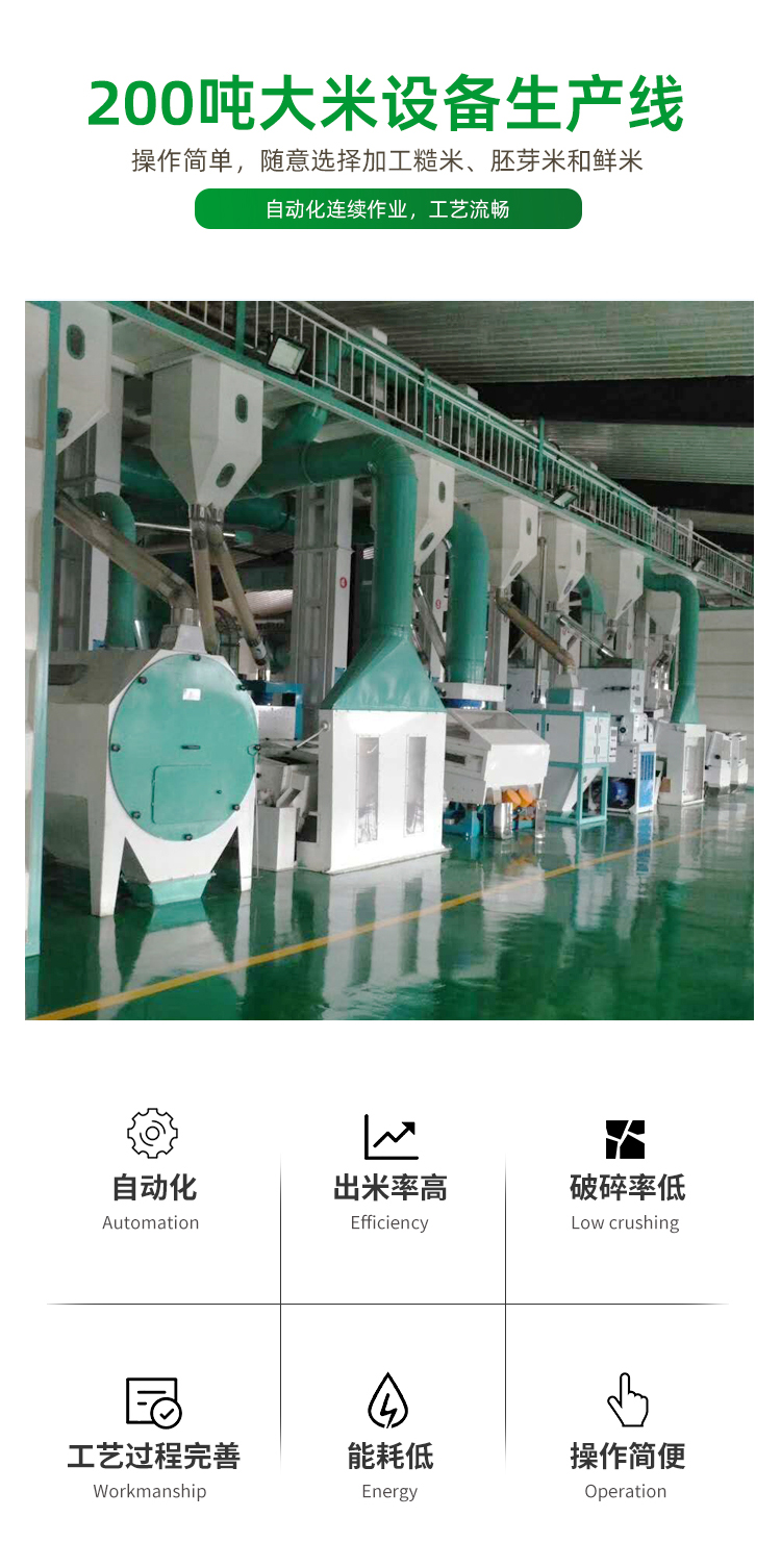 3、工藝過程完善,本成套設(shè)備從原糧清理、去石、多級脫殼、多級碾磨拋光、到大米分級裝袋、配電全部實(shí)現(xiàn)自動化連續(xù)作業(yè),工藝流暢,操作維修方便。