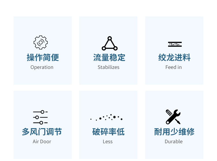 采用絞龍強(qiáng)制進(jìn)料,流量穩(wěn)定,破碎率低。