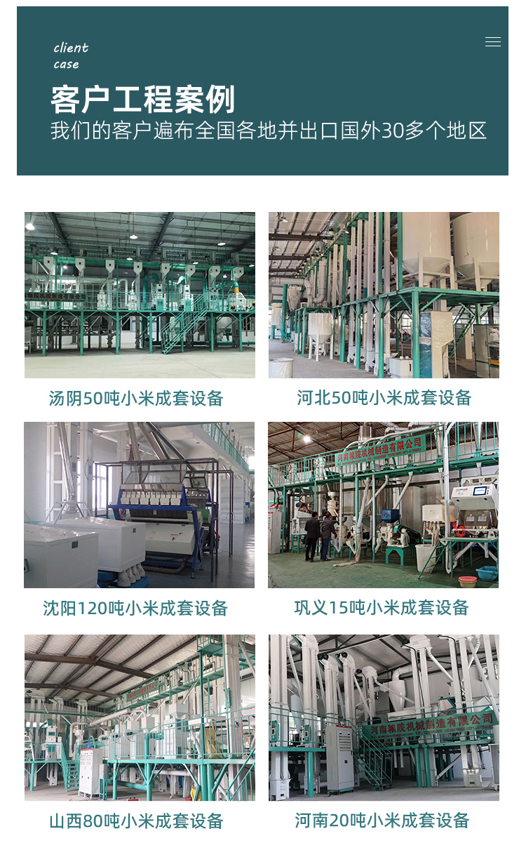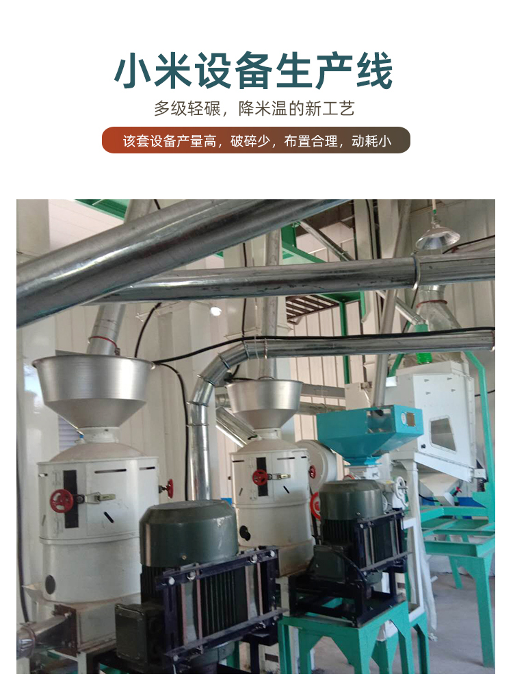該小米加工成套設(shè)備包括:日產(chǎn)10噸、20噸、30噸和50噸,四個型號的小米加工機械。