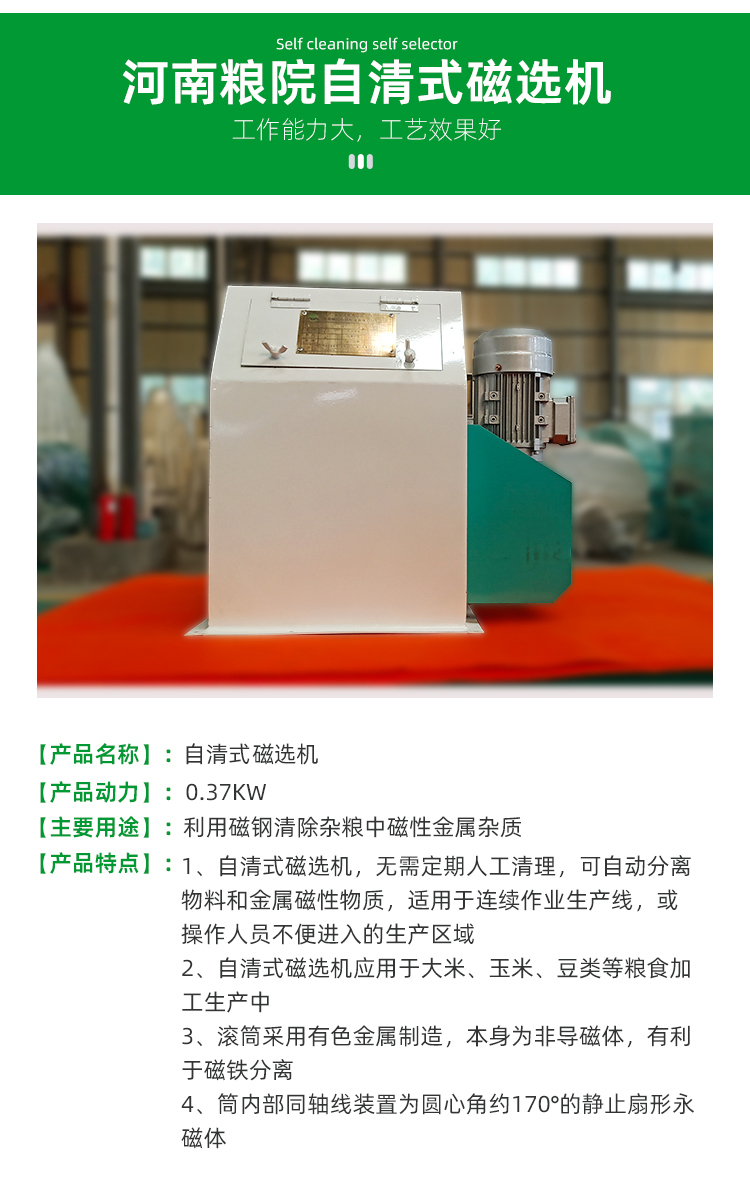 2、自清式磁選機(jī)應(yīng)用于大米、玉米、豆類等糧食加工生產(chǎn)中。